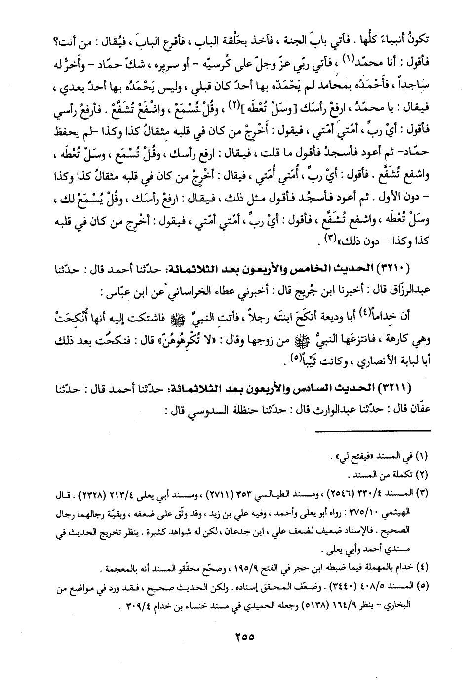 (٥) المسند ٥/ ٤٠٨ (٣٤٤٠). وضعّف المحقّق إسناده. ولكن الحديث صحيح، فقد ورد في مواضع من البخاري - ينظر ٩/ ١٦٤ (٥١٣٨) وجعله الحميدي في مسند خنساء بن خدام ٤/ ٣٠٩.