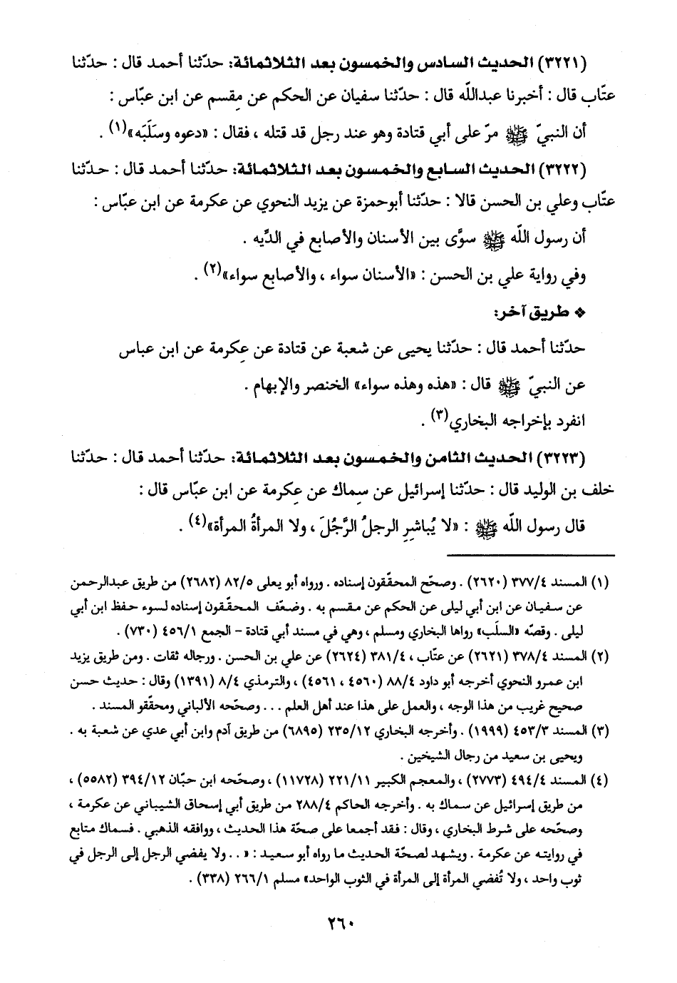 (٣٢٢١) الحديث السادس والخمسون بعد الثلاثمائة: حدّثنا أحمد قال: حدّثنا عتّاب قال: أخبرنا عبد اللَّه قال: حدّثنا سفيان عن الحكم عن مِقسم عن ابن عبّاس: