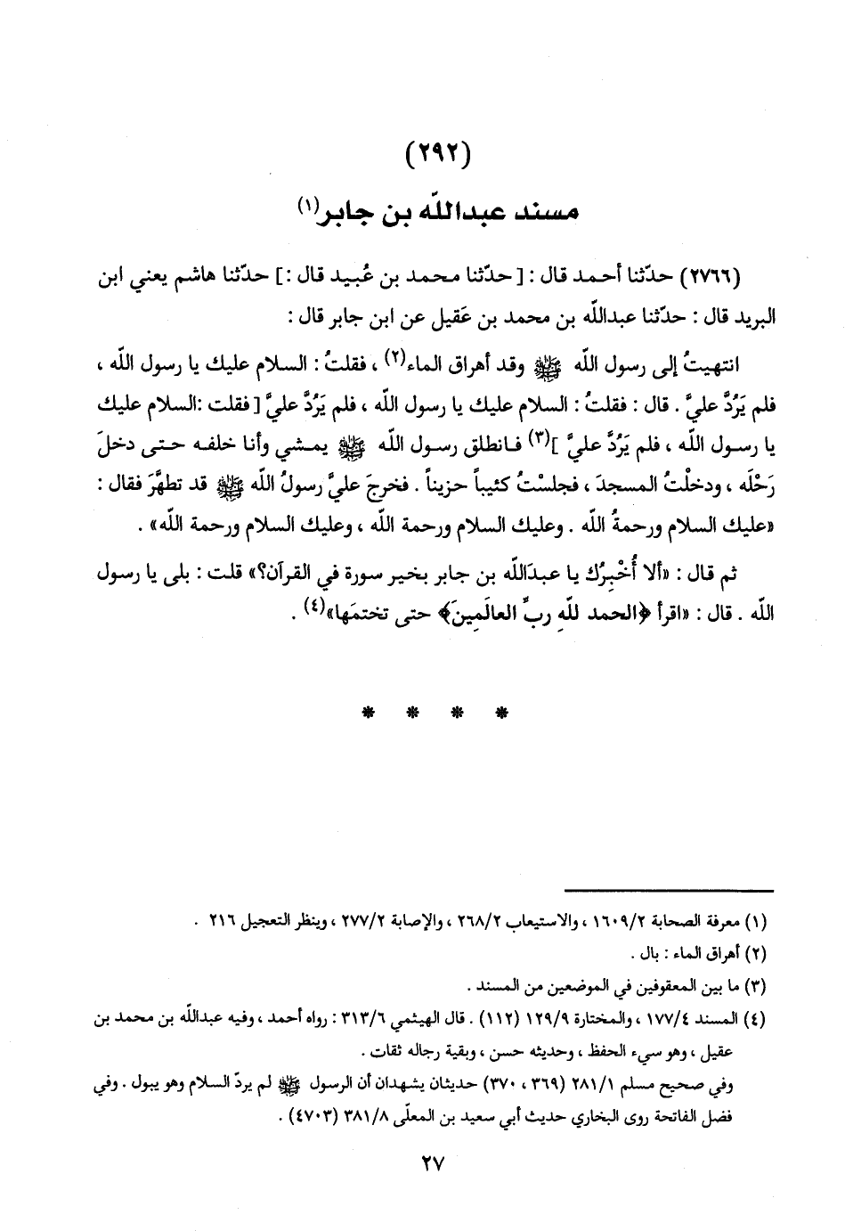 (٢٩٢) مسند عبد اللَّه بن جابر (١)