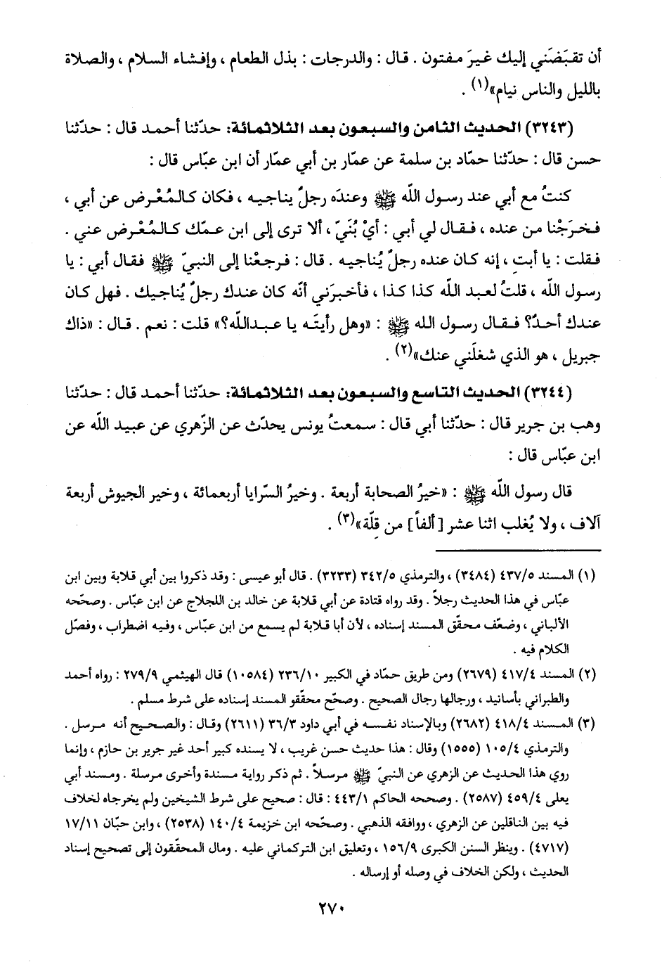 (٣٢٤٣) الحديث الثامن والسبعون بعد الثلاثمائة: حدّثنا أحمد قال: حدّثنا حسن قال: حدّثنا حمّاد بن سلمة عن عمّار بن أبي عمّار أن ابن عبّاس قال: