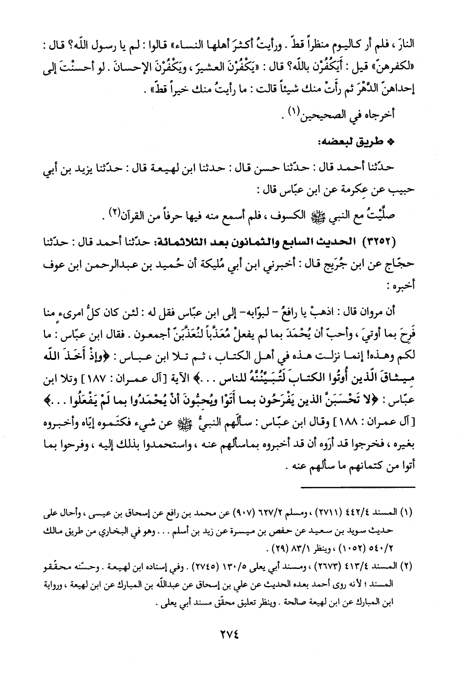 حدّثنا أحمد قال: حدّثنا حسن قال: حدّثنا ابن لهيعة قال: حدّثنا يزيد بن أبي حبيب عن عِكرمة عن ابن عبّاس قال: