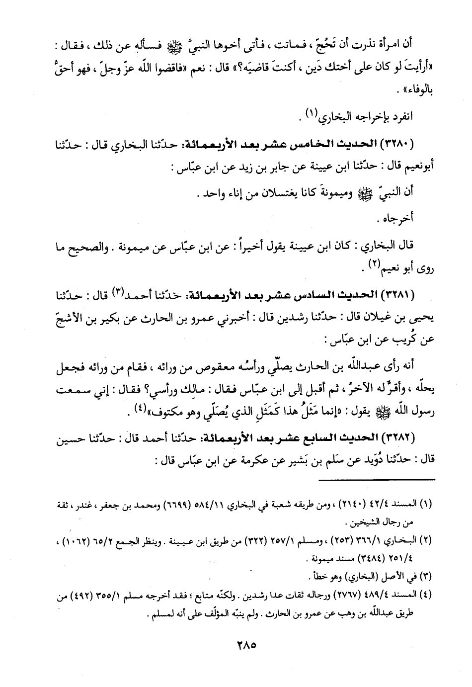 (٣٢٨١) الحديث السادس عشر بعد الأربعمائة: حدّثنا أحمد (٣) قال: حدّثنا يحيى بن غيلان قال: حدّثنا رشدين قال: أخبرني عمرو بن الحارث عن بكرٍ بن الأشجّ عن كُريب عن ابن عبّاس: