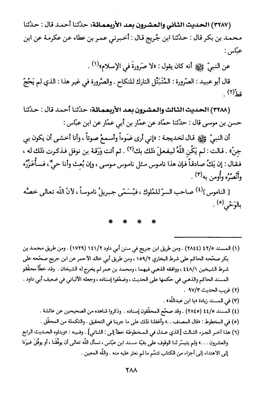 (٣٢٨٨) الحديث الثالث والعشرون بعد الأربعمائة: حدّثنا أحمد قال: حدّثنا حسن بن موسى قال: حدّثنا حمّاد عن عمّار بن أبي عمّار عن ابن عبّاس:
