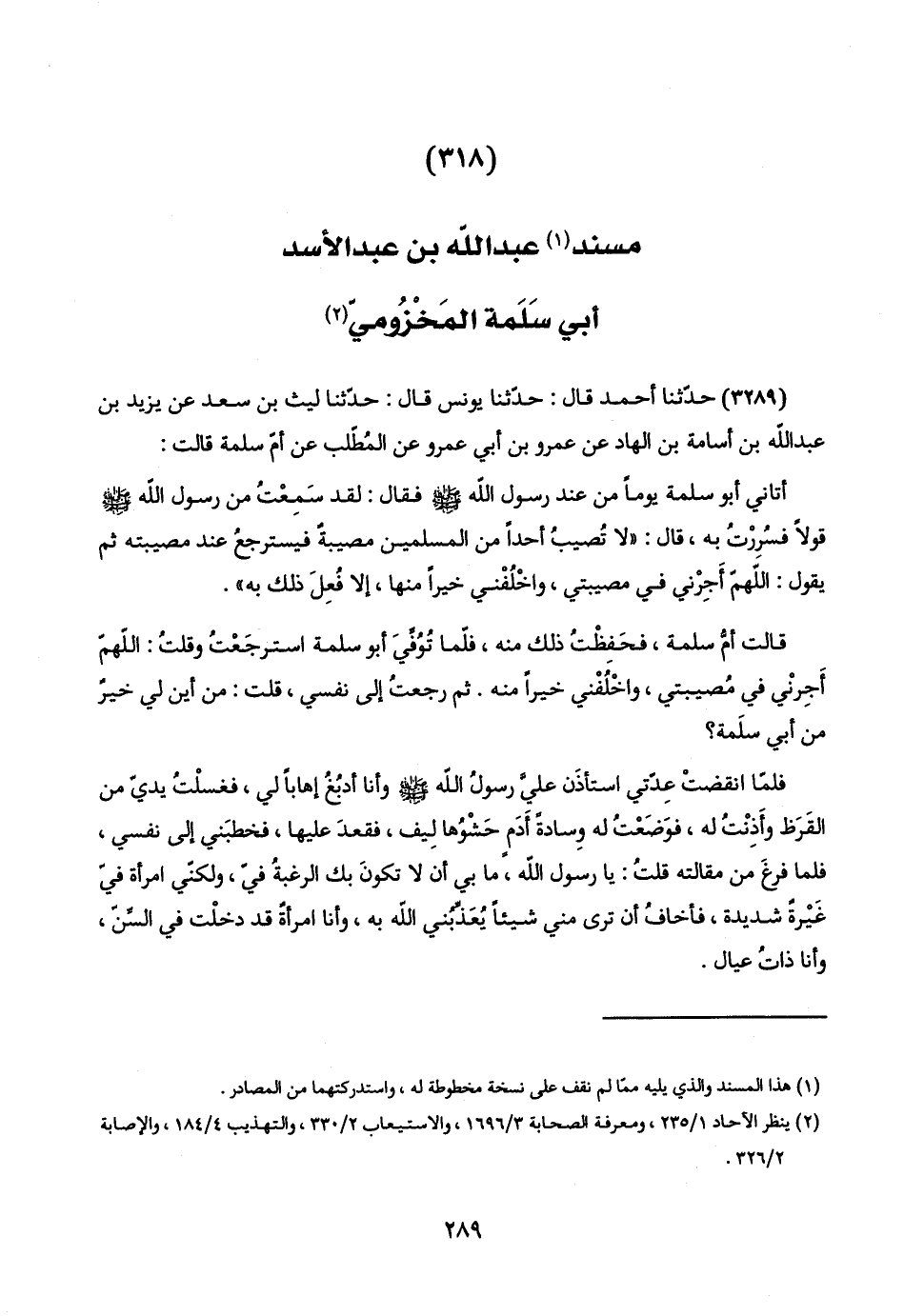 (٣١٨) مسند (١) عبد اللَّه بن عبد الأسد أبي سَلَمة المَخْزُوميّ (٢)