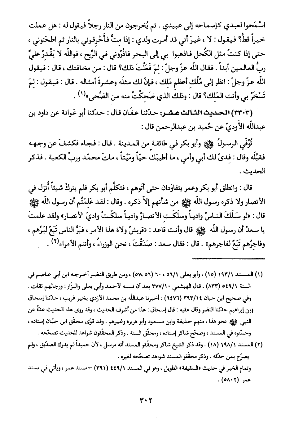 (٣٣٠٣) الحديث الثالث عشر: حدّثنا عفّان قال: حدّثنا أبو عَوانة عن داود بن عبد اللَّه الأَوديّ عن حُميد بن عبد الرحمن قال:
