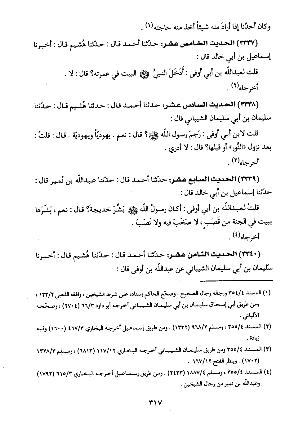(٣٣٣٩) الحديث السابع عشر: حدّثنا أحمد قال: حدّثنا عبد اللَّه بن نُمير قال: حدّثنا إسماعيل بن أبي خالد قال: