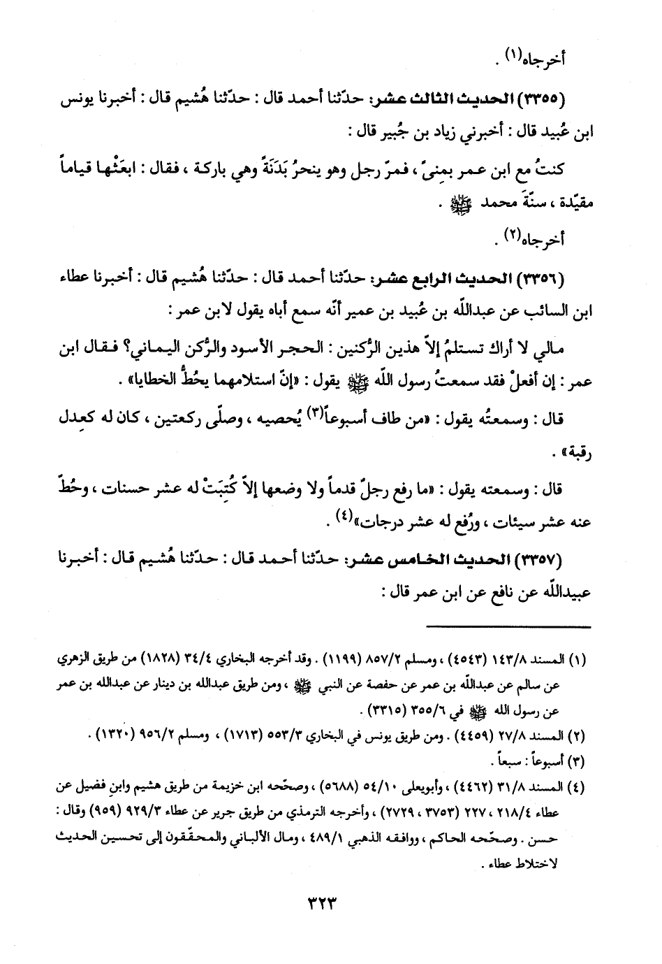 (٣٣٥٧) الحديث الخامس عشر: حدّثنا أحمد قال: حدّثنا هُشيم قال: أخبرنا عبيد اللَّه عن نافع عن ابن عمر قال: