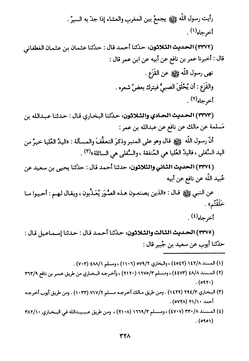 (٣٣٧٤) الحديث الثاني والثلاثون: حدّثنا أحمد قال: حدّثنا يحيى بن سعيد عن عُبيد اللَّه عن نافع عن أبيه: