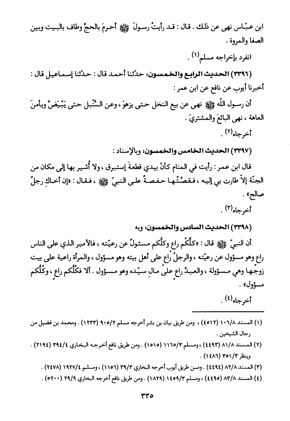 (٤) المسند ٨/ ٨٣ (٤٤٩٥)، ومسلم ٣/ ١٤٥٩ (١٨٢٩). ومن طريق نافع أخرجه البخاري ٩/ ٢٩ (٥٢٠٠).