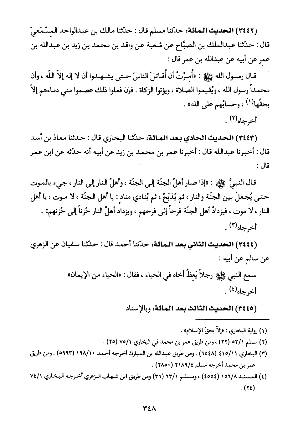(٤) المسند ٨/ ١٥٦ (٤٥٥٤)، ومسلم ١/ ٦٣ (٣٦) ومن طريق ابن شهاب الزهري أخرجه البخاري ١/ ٧٤ (٢٤).