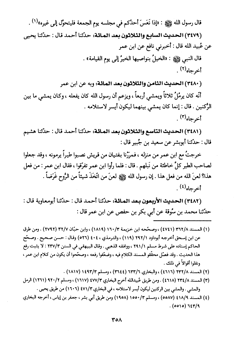 (٣٤٧٩) الحديث السابع والثلاثون بعد المائة: حدّثنا أحمد قال: حدّثنا يحيى عن عُبيد اللَّه قال: أخبرني نافع عن ابن عمر: