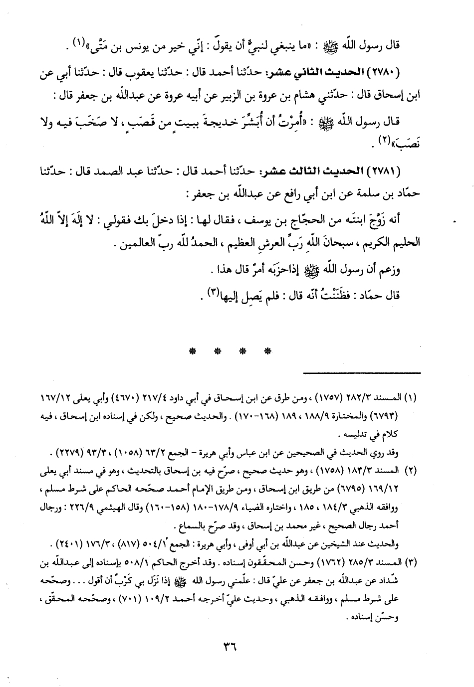 (٢٧٨١) الحديث الثالث عشر: حدّثنا أحمد قال: حدّثنا عبد الصمد قال: حدّثنا حمّاد بن سلمة عن ابن أبي رافع عن عبد اللَّه بن جعفر: