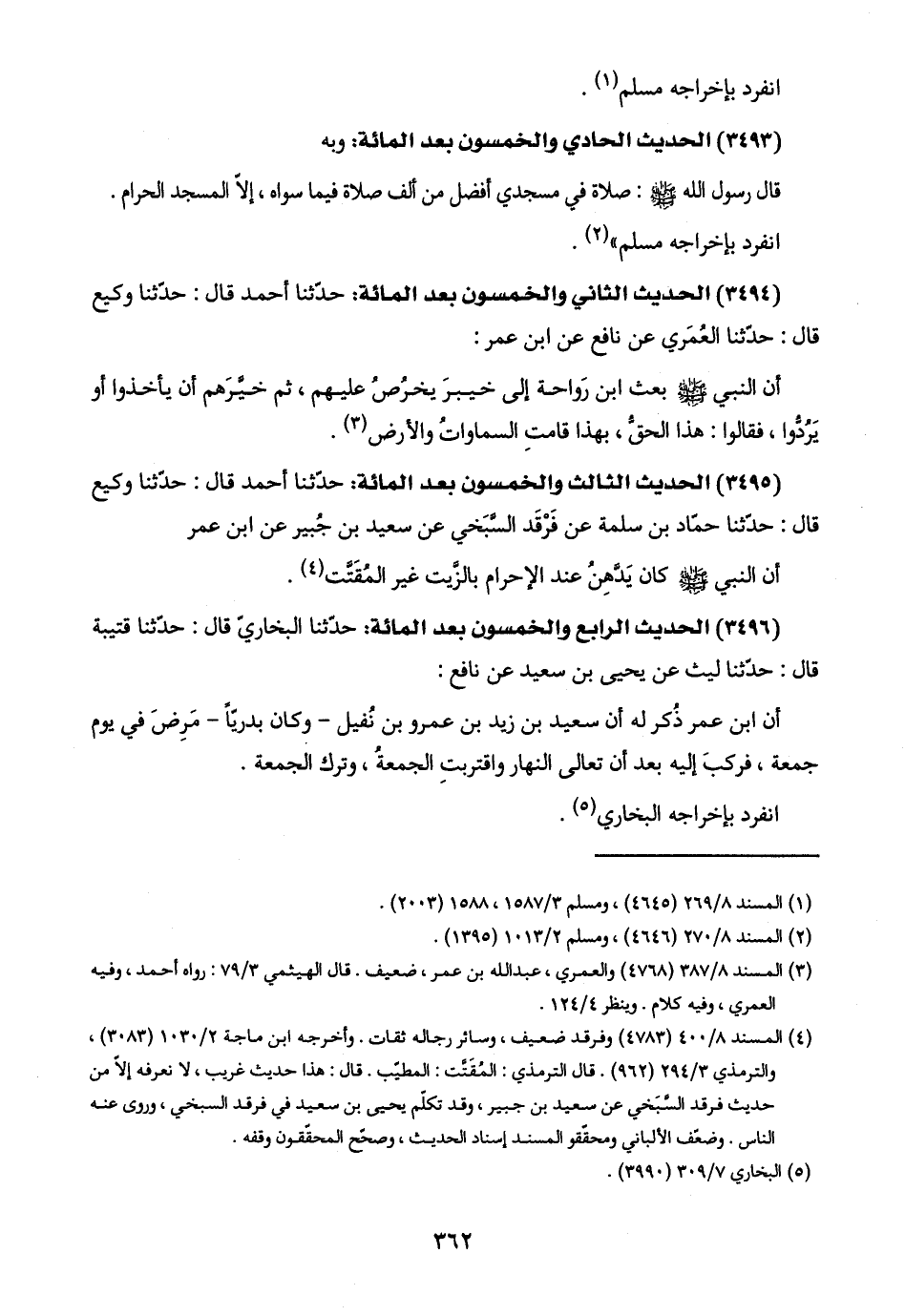 (٣٤٩٥) الحديث الثالث والخمسون بعد المائة: حدّثنا أحمد قال: حدّثنا وكيع قال: حدّثنا حمّاد بن سلمة عن فَرْقَد السَّبَخي عن سعيد بن جُبير عن ابن عمر: