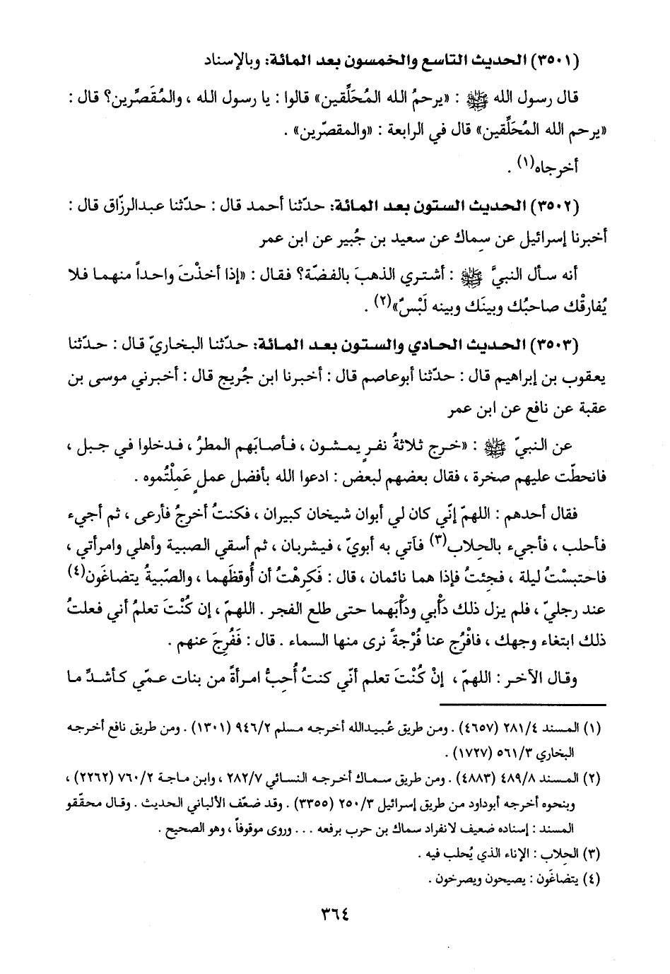 (٣٥٠٢) الحديث الستون بعد المائة: حدّثنا أحمد قال: حدّثنا عبد الرزّاق قال: أخبرنا إسرائيل عن سِماك عن سعيد بن جُبير عن ابن عمر: