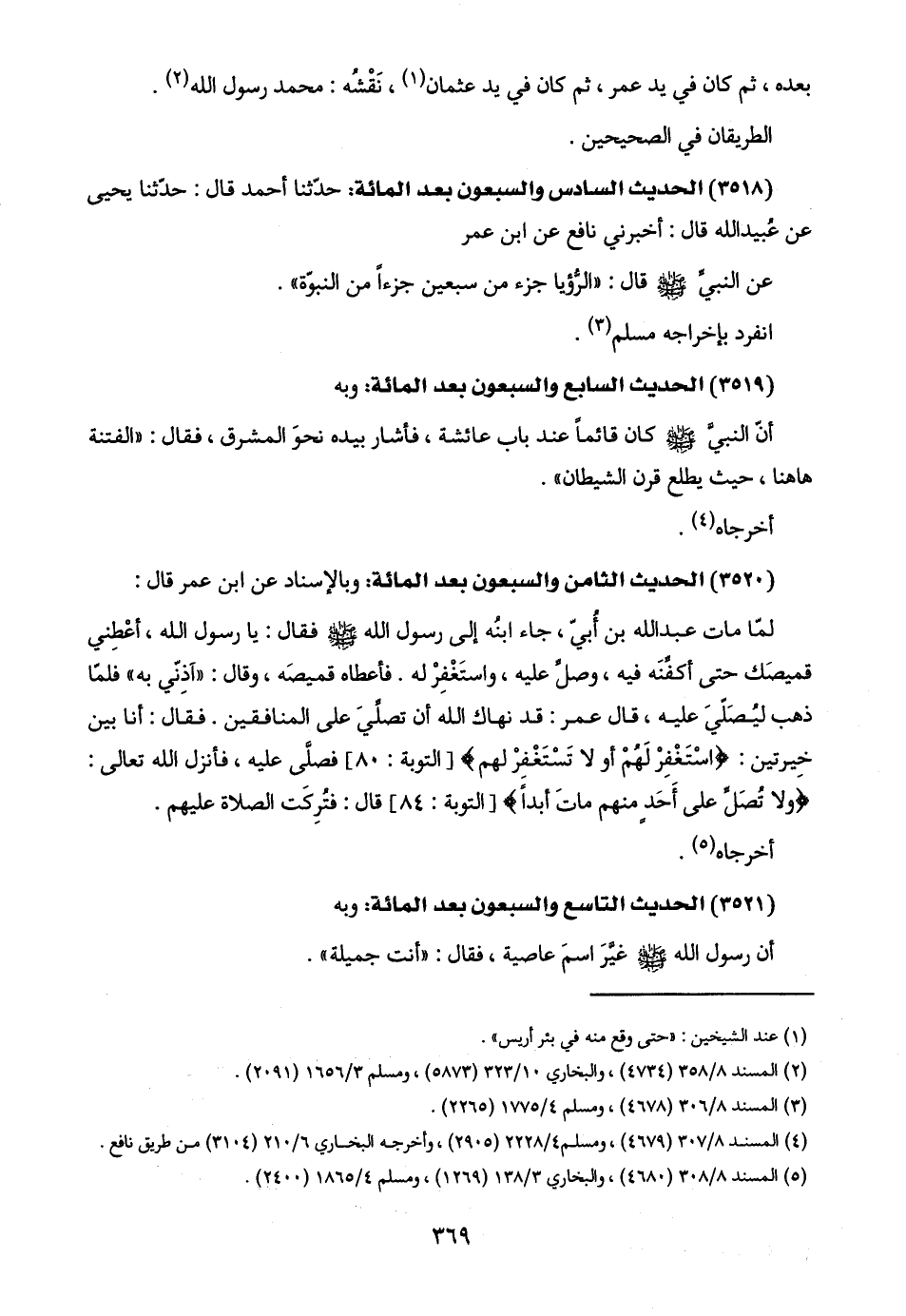 (٥) المسند ٨/ ٣٠٨ (٤٦٨٠)، والبخاري ٣/ ١٣٨ (١٢٦٩)، ومسلم ٤/ ١٨٦٥ (٢٤٠٠).