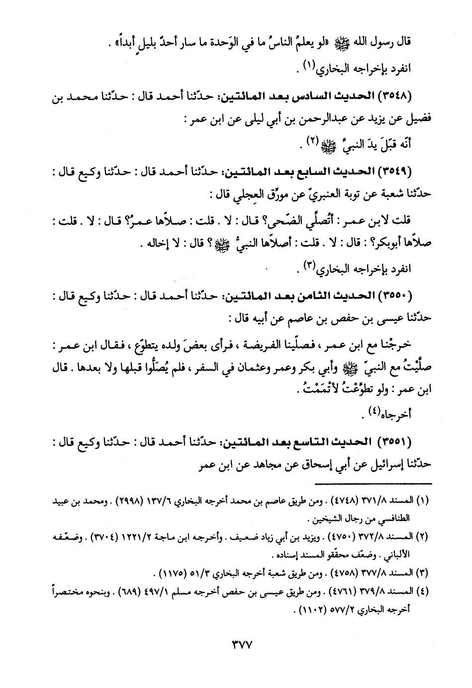 (٣٥٤٨) الحديث السادس بعد المائتين: حدّثنا أحمد قال: حدّثنا محمد بن فضيل عن يزيد عن عبد الرحمن بن أبي ليلى عن ابن عمر: