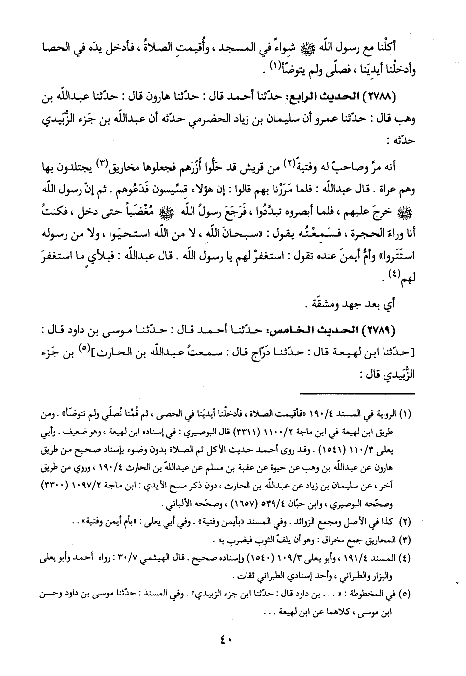 (٢٧٨٩) الحديث الخامس: حدّثنا أحمد قال: حدّثنا موسى بن داود قال: [حدّثنا ابن لهيعة قال: حدّثنا دَرّاج قال: سمعتُ عبد اللَّه بن الحارث] (٥) بن جَزء الزُّبَيدي قال: