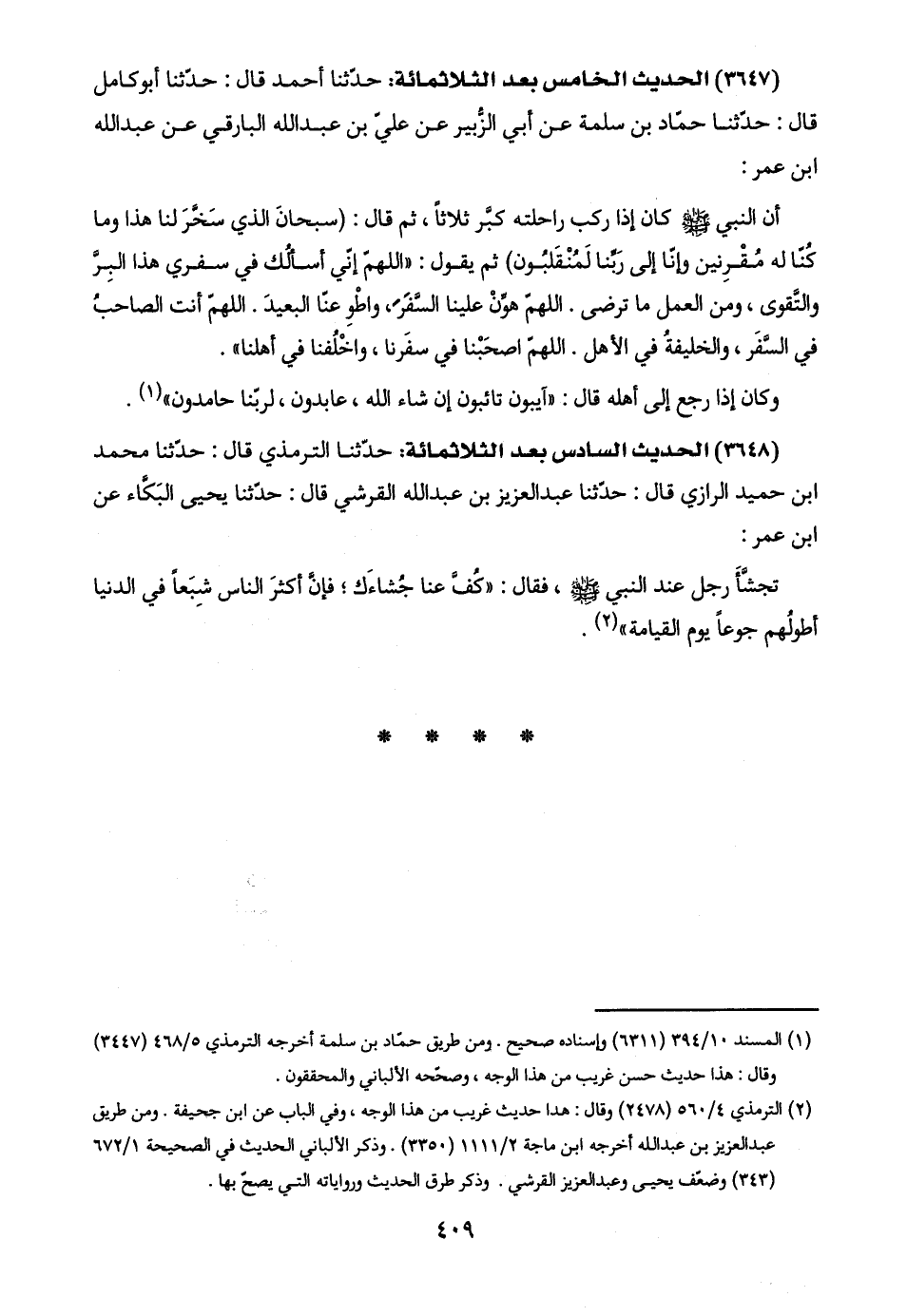 (٣٦٤٧) الحديث الخامس بعد الثلاثمائة: حدّثنا أحمد قال: حدّثنا أبو كامل قال: حدّثنا حمّاد بن سلمة عن أبي الزُّبير عن عليّ بن عبد اللَّه البارقي عن عبد اللَّه ابن عمر: