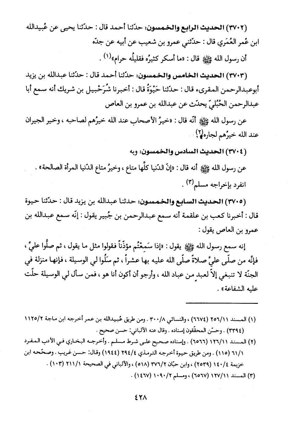 (٣٧٠٣) الحديث الخامس والخمسون: حدّثنا أحمد قال: حدّثنا عبد اللَّه بن يزيد أبو عبد الرحمن المقرىء قال: حدّثنا حَيْوَة قال: أخبرنا شُرَحْبيل بن شريك أنّه سمع أبا عبد الرحمن الحُبُليّ يحدّث عن عبد اللَّه بن عمرو بن العاص: