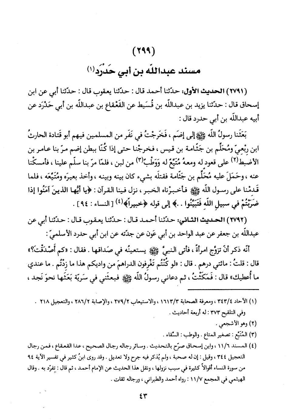 (٢٩٩) مسند عبد اللَّه بن أبي حَدْرَد (١)