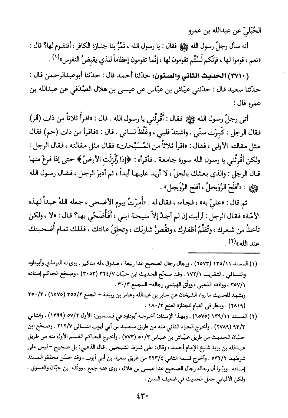 (٣٧١٠) الحديث الثاني والستون: حدّثنا أحمد قال: حدّثنا أبو عبد الرحمن قال: حدّثنا سعيد قال: حدّثني عيّاش بن عبّاس عن عيسى بن هلال الصَّدَفي عن عبد اللَّه بن عمرو قال:
