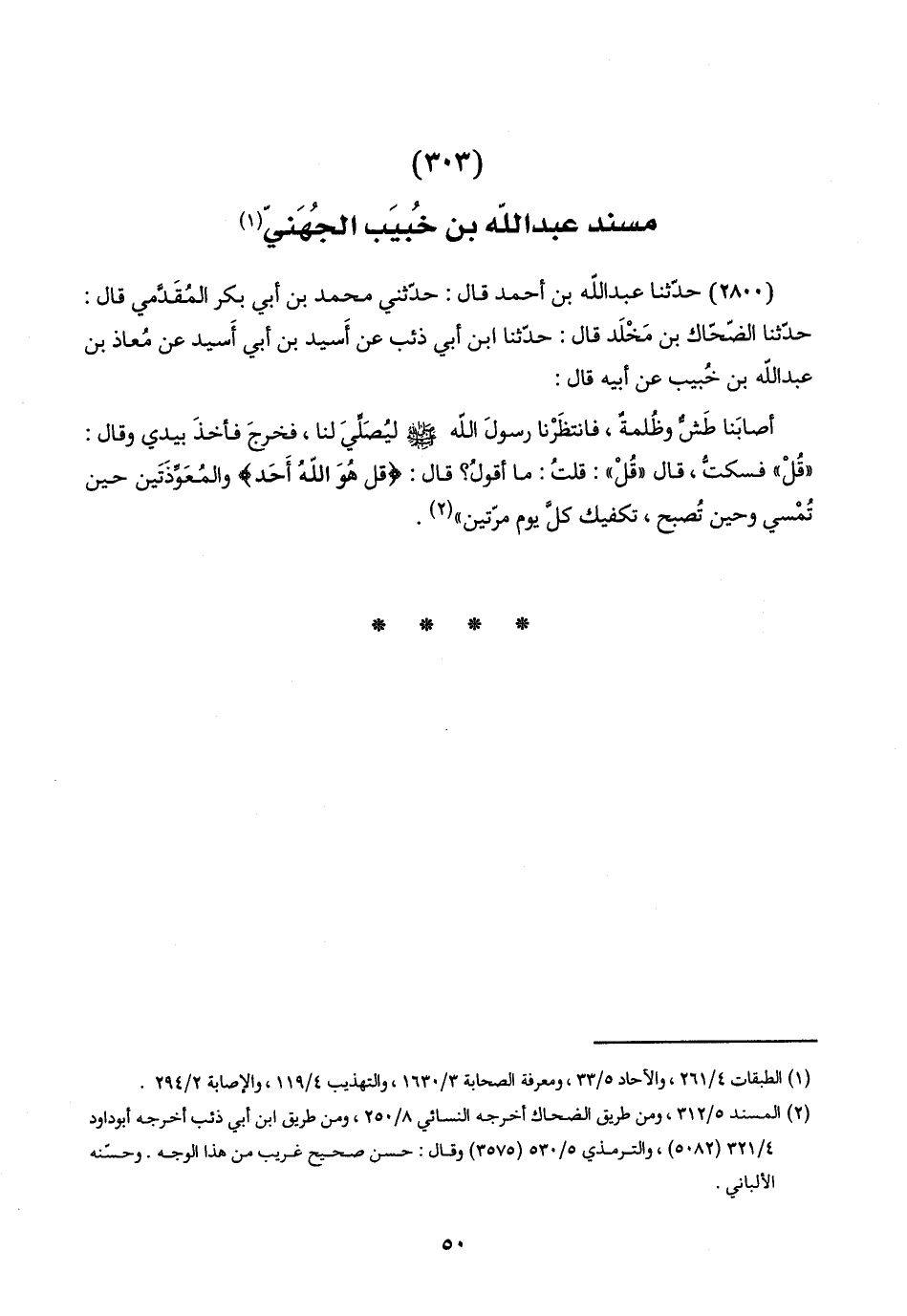 (٣٠٣) مسند عبد اللَّه بن خُبيب الجُهَنيّ (١)