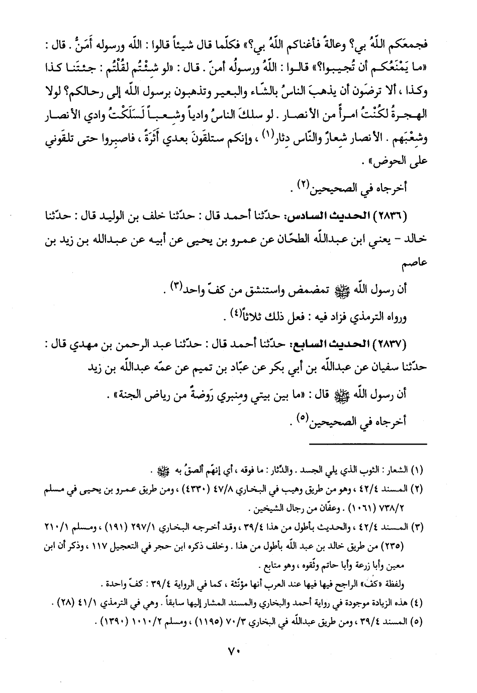 (٥) المسند ٤/ ٣٩، ومن طريق عبد اللَّه في البخاري ٣/ ٧٠ (١١٩٥)، ومسلم ٢/ ١٠١٠ (١٣٩٠).