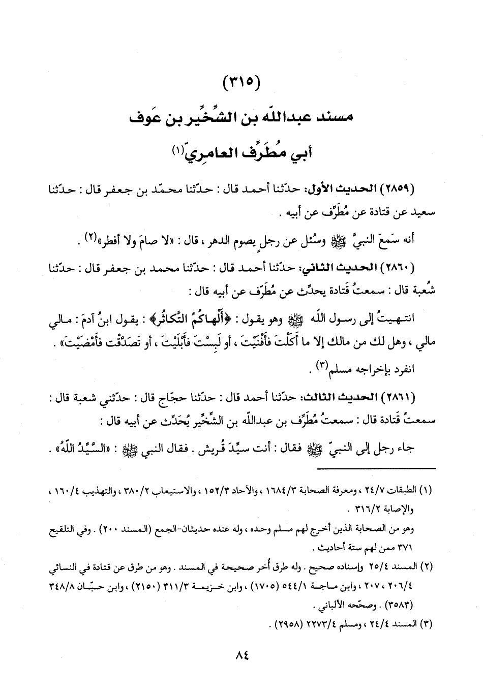 (٣١٥) مسند عبد اللَّه بن الشِّخِّير بن عَوف أبي مُطَرِّف العامِريّ (١)