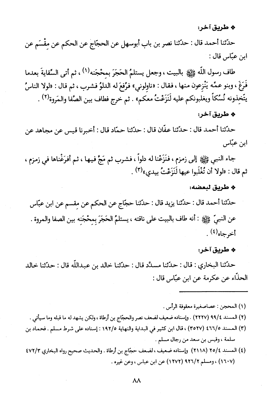 (٤) المسند ٤/ ٢٥ (١٨ ٢١) وإسناده ضعيف، لضعف حجّاج بن أرطاة. والحديث صحيح رواه البخاري ٣/ ٤٧٢ (١٦٠٧)، ومسلم ٢/ ٩٢٦ (١٢٧٢) عن ابن عباس، وعن غيره.
