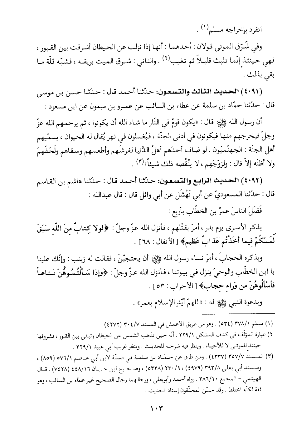 (٤٠٩٢) الحديث الرابع والتسعون: حدّثنا أحمد قال: حدّثنا هاشم بن القاسم قال: حدّثنا المسعوديّ عن أبي نَهْشَل عن أبي وائل قال: قال عبد اللَّه: