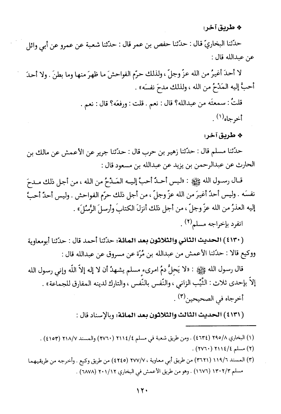 (٤١٣٠) الحديث الثاني والثلاثون بعد المائة: حدّثنا أحمد قال: حدّثنا أبو معاوية ووكيع قالا: حدّثنا الأعمش من عبد اللَّه بن مُرّة عن مسروف عن عبد اللَّه قال: