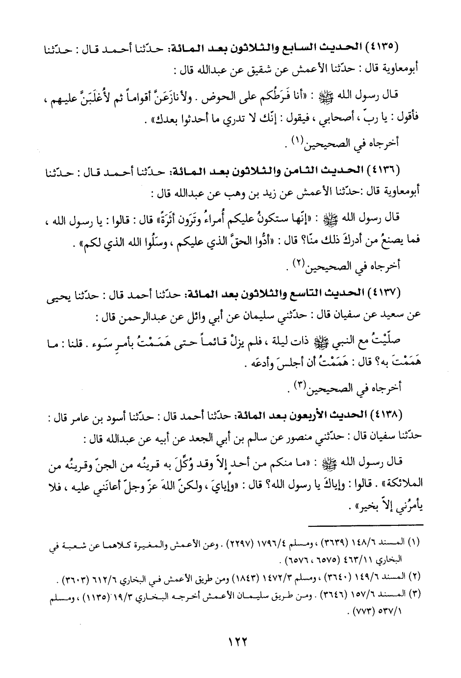 (٤١٣٦) الحديث الثامن والثلاثون بعد المائة: حدّثنا أحمد قال: حدّثنا أبو معاوية قال: حدّثنا الأعمش عن زيد بن وهب عن عبد اللَّه قال: