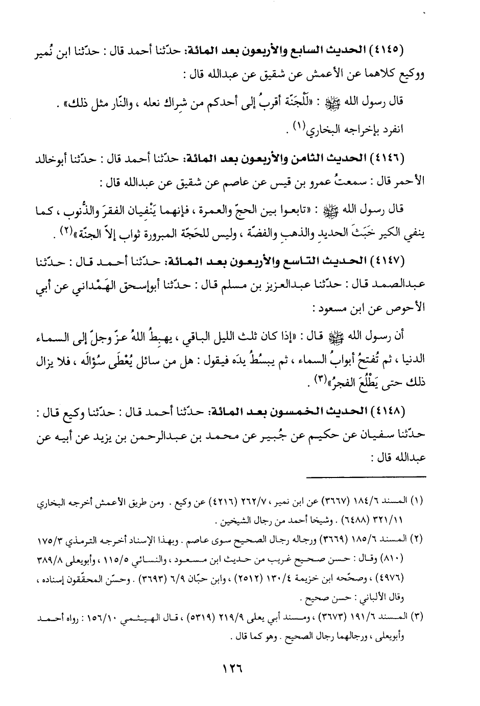 (٤١٤٧) الحديث التاسع والأربعون بعد المائة: حدّثنا أحمد قال: حدّثنا عبد الصمد قال: حدّثنا عبد العزيز بن مسلم قال: حدّثنا أبو إسحق الهَمْداني عن أبي الأحوص عن ابن مسعود: