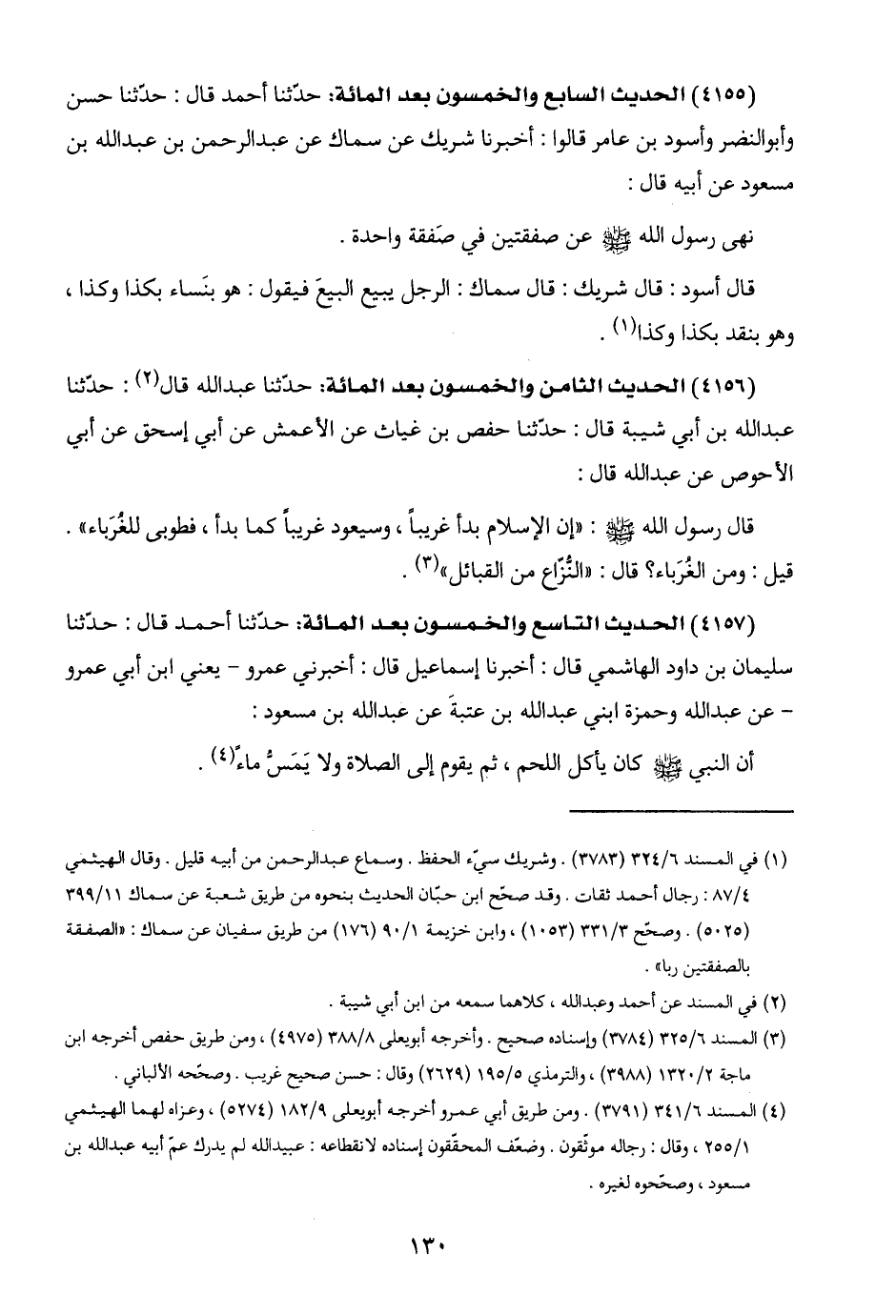 (٤١٥٦) الحديث الثامن والخمسون بعد المائة: حدّثنا عبد اللَّه قال (٢): حدّثنا عبد اللَّه بن أبي شيبة قال: حدّثنا حفص بن غياث عن الأعمش عن أبي إسحق عن أبي الأحوص عن عبد اللَّه قال: