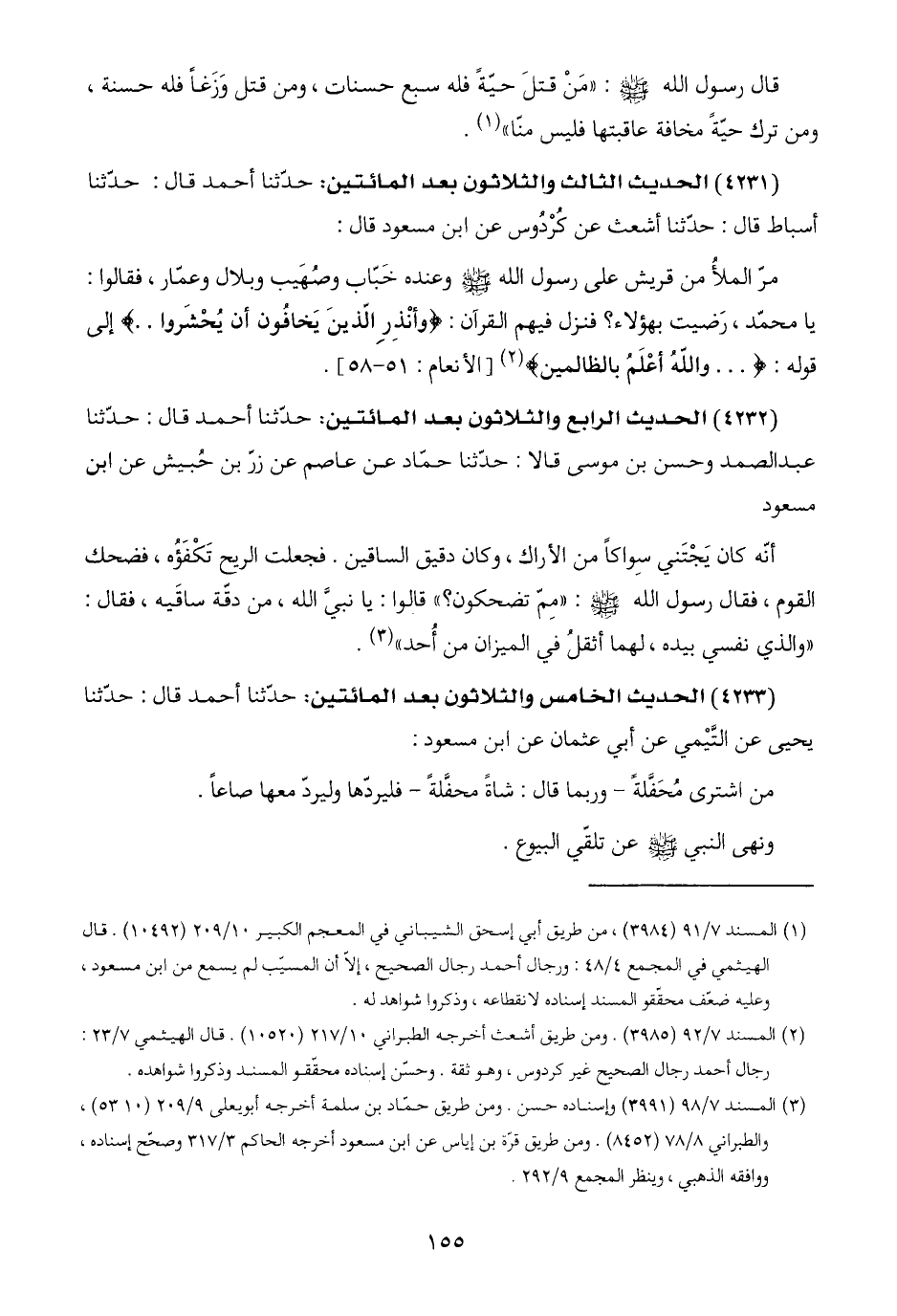 (٤٢٣٣) الحديث الخامس والثلاثون بعد المائتين: حدّثنا أحمد قال: حدّثنا يحيى عن التَّيْمي عن أبي عثمان عن ابن مسعود: