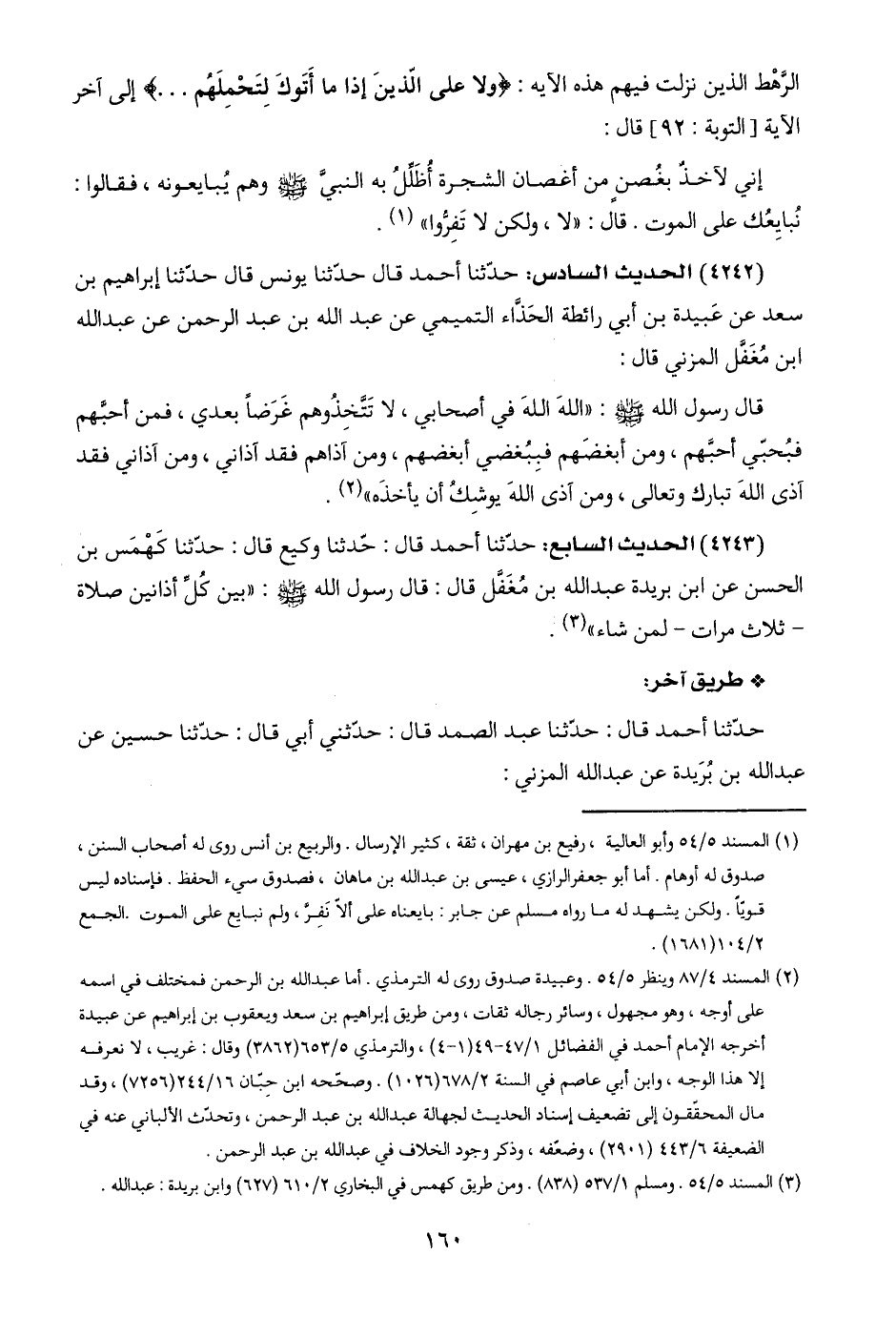 حدّثنا أحمد قال: حدّثنا عبد الصمد قال: حدّثني أبي قال: حدّثنا حسين عن عبد اللَّه بن بُرَيدة عن عبد اللَّه المزني: