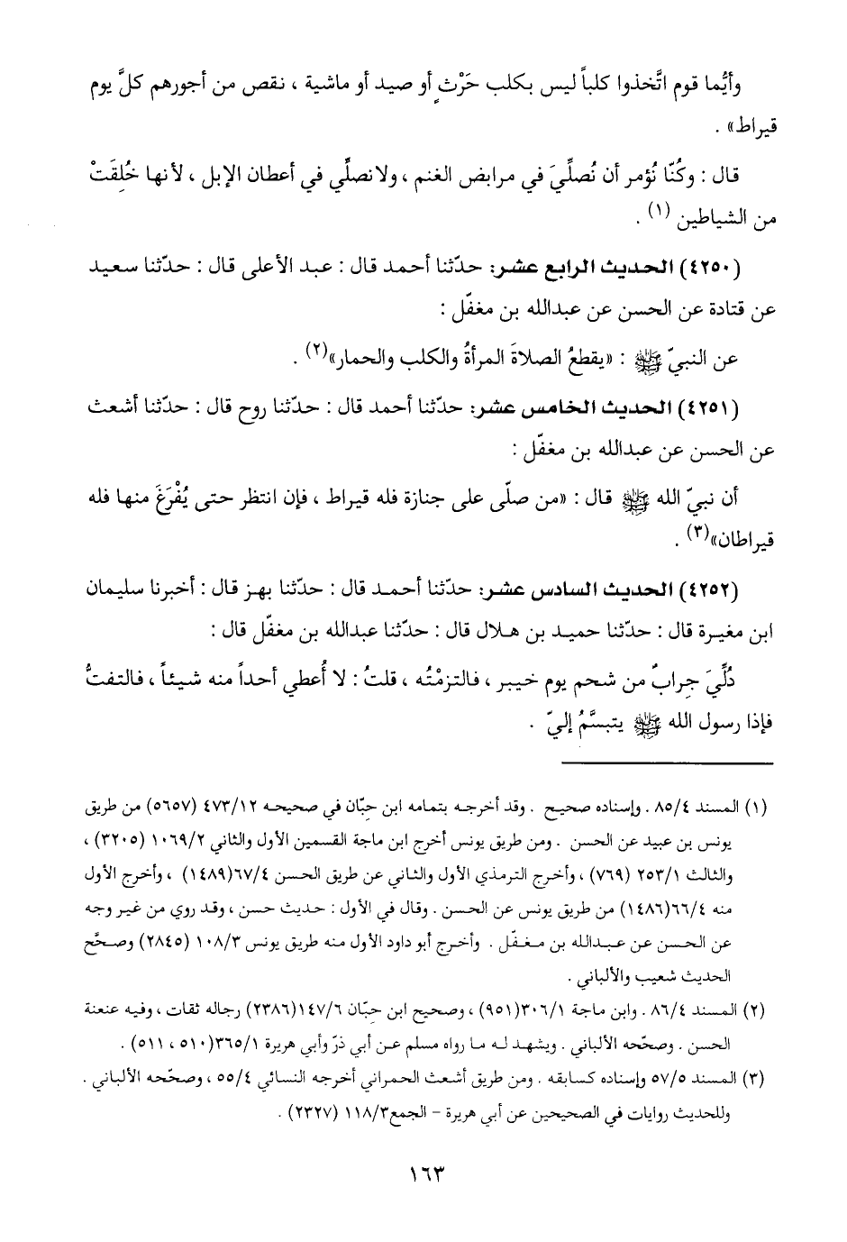 (٤٢٥٢) الحديث السادس عشر: حدّثنا أحمد قال: حدّثنا بهز قال: أخبرنا سليمان ابن مغيرة قال: حدّثنا حميد بن هلال قال: حدّثنا عبد اللَّه بن مغفّل قال: