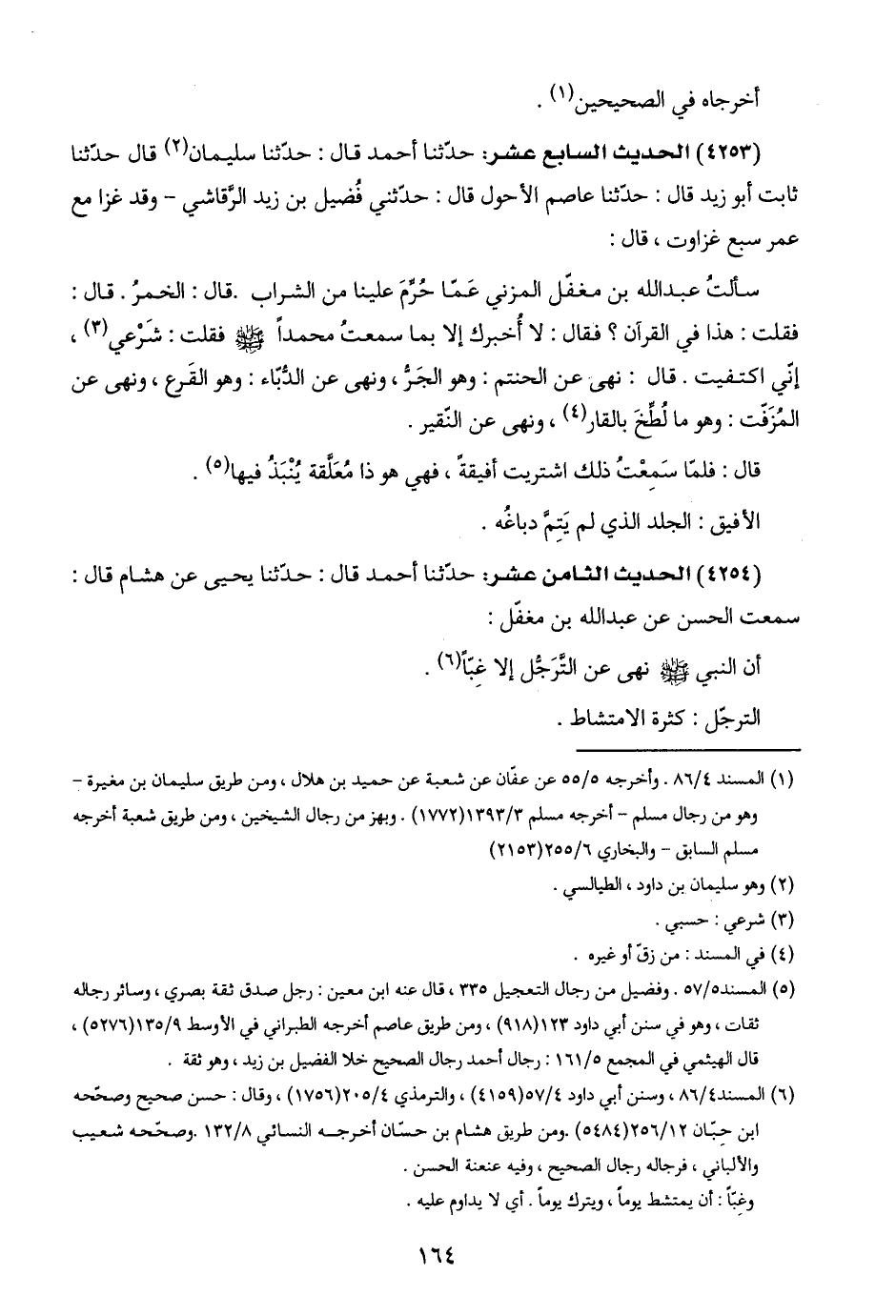 (٥) المسند ٥/ ٥٧. وفضيل من رجال التعجيل ٣٣٥، قال عنه ابن معين: رجل صدق ثقة بصري، وسائر رجله ثقات، وهو في سنن أبي داود ١٢٣ (٩١٨)، ومن طريق عاصم أخرجه الطبراني في الأوسط ٩/ ١٣٥ (٥٢٧٦)، قال الهيثمي في المجمع ٥/ ١٦١: رجال أحمد رجال الصحيح خلا الفضيل بن زيد، وهو ثقة.