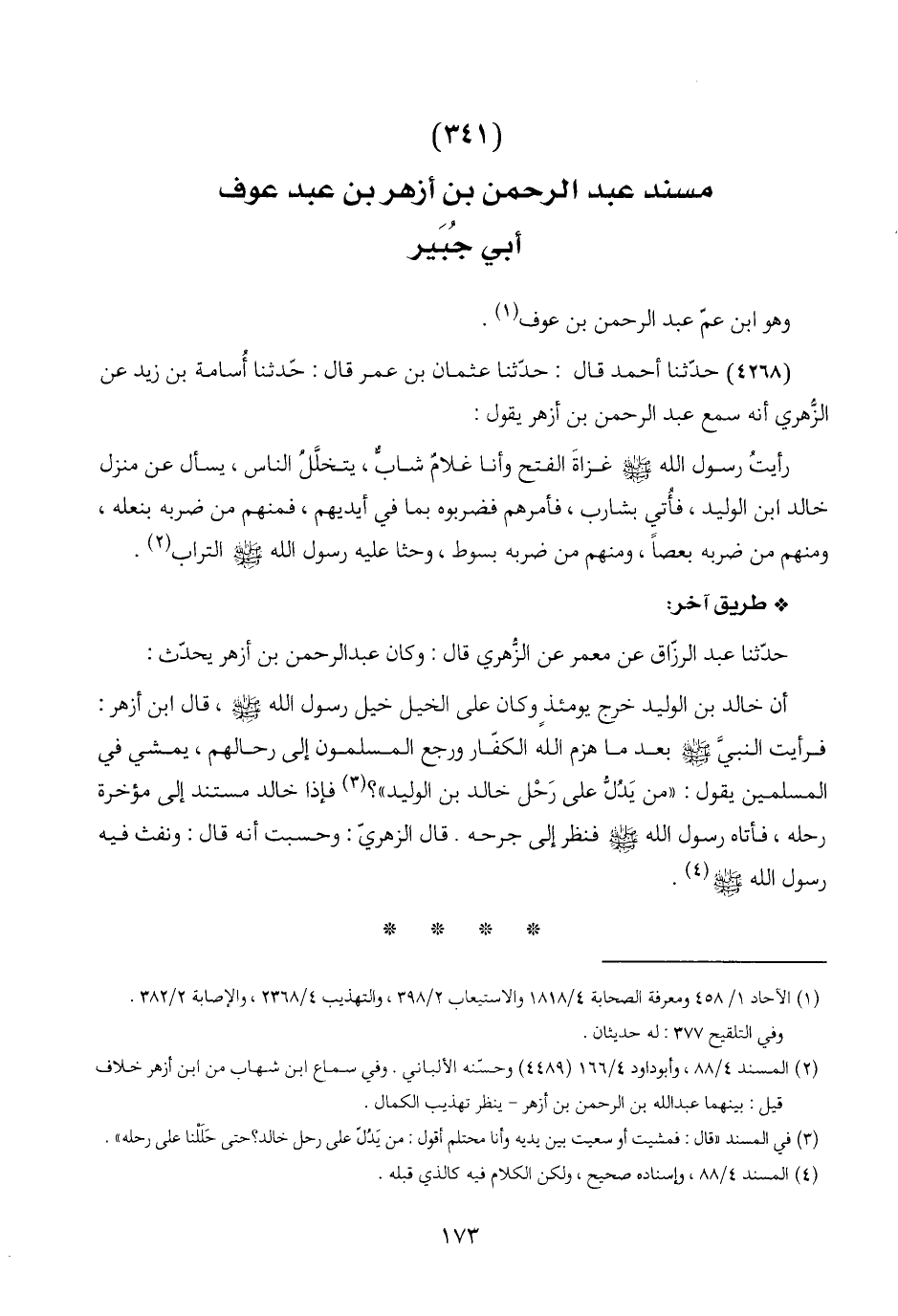 (٣٤١) مسند عبد الرحمن بن أزهر بن عبد عوف أبي جُبَير