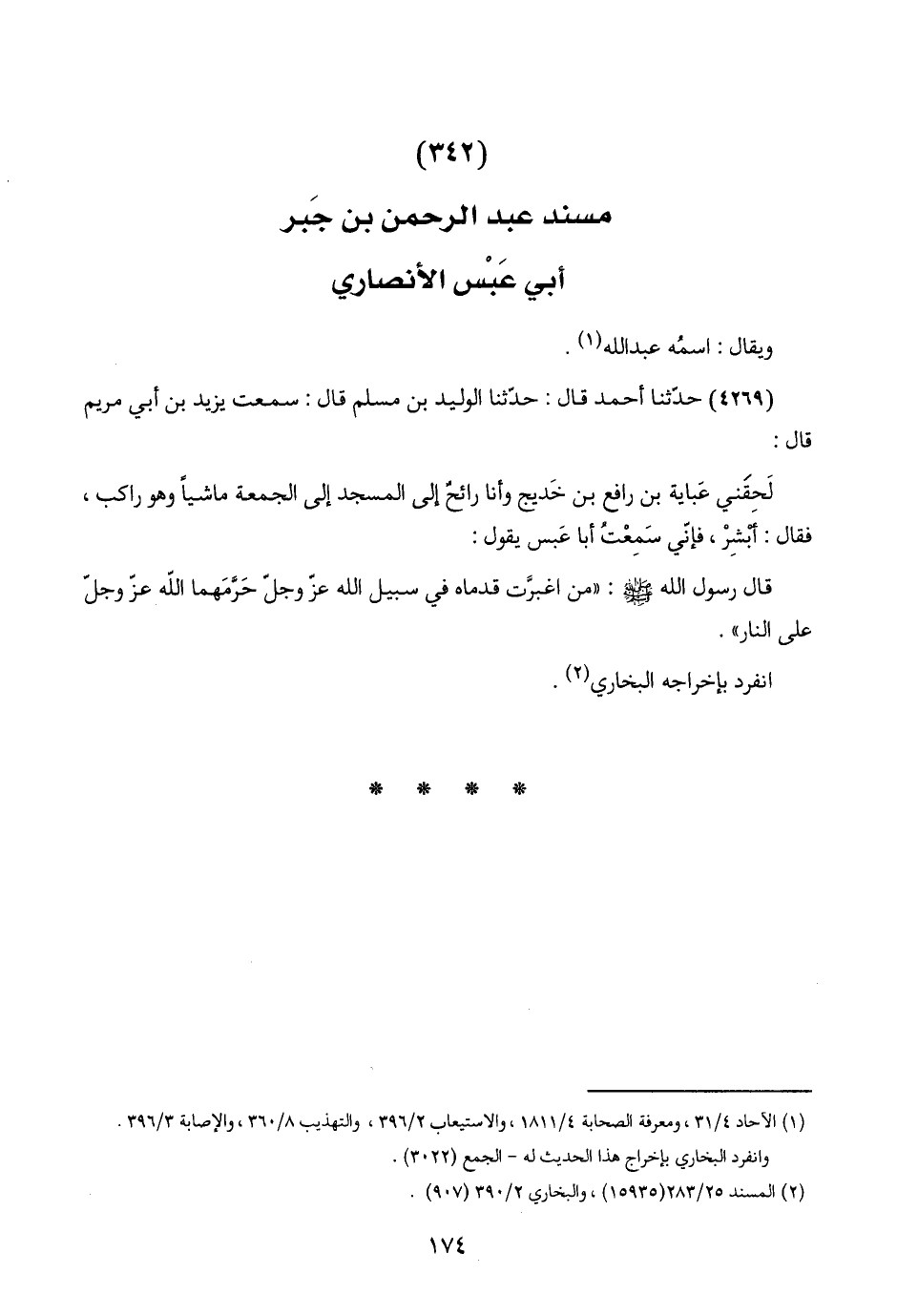 (٣٤٢) مسند عبد الرحمن بن جَبر أبي عَبْس الأنصاري