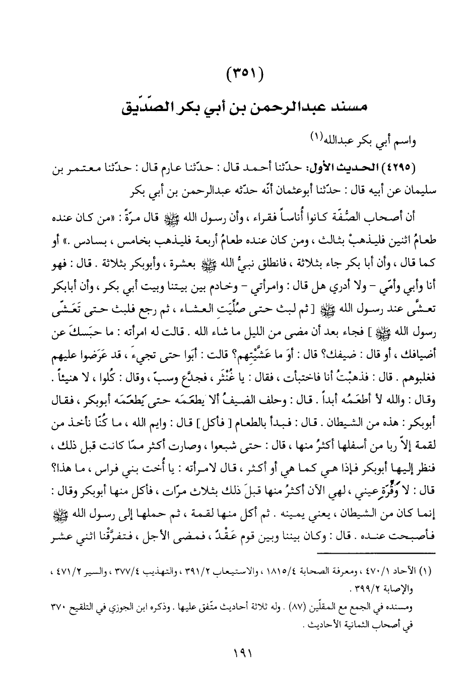 (٣٥١) مسند عبد الرحمن بن أبي بكر الصّدّيق