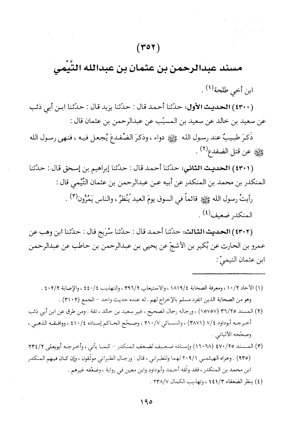 (٣٥٢) مسند عبد الرحمن بن عثمان بن عبد اللَّه التَّيْمي