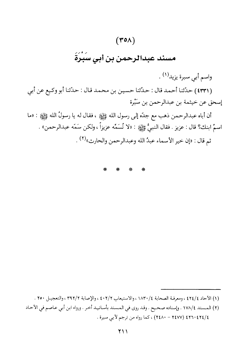 (٣٥٨) مسند عبد الرحمن بن أبي سَبْرَةَ