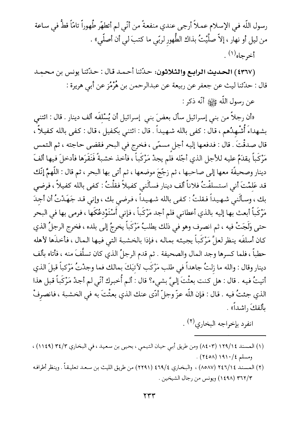 (٢) المسند ١٤/ ٢٤٦ (٨٥٨٧)، والبخاري ٤/ ٤٦٩ (٢٢٩١) من طريق الليث بن سعد تعليقًا. وينظر أطرافه ٣/ ٣٦٢ (١٤٩٨) ويونس من رجال الشيخين.