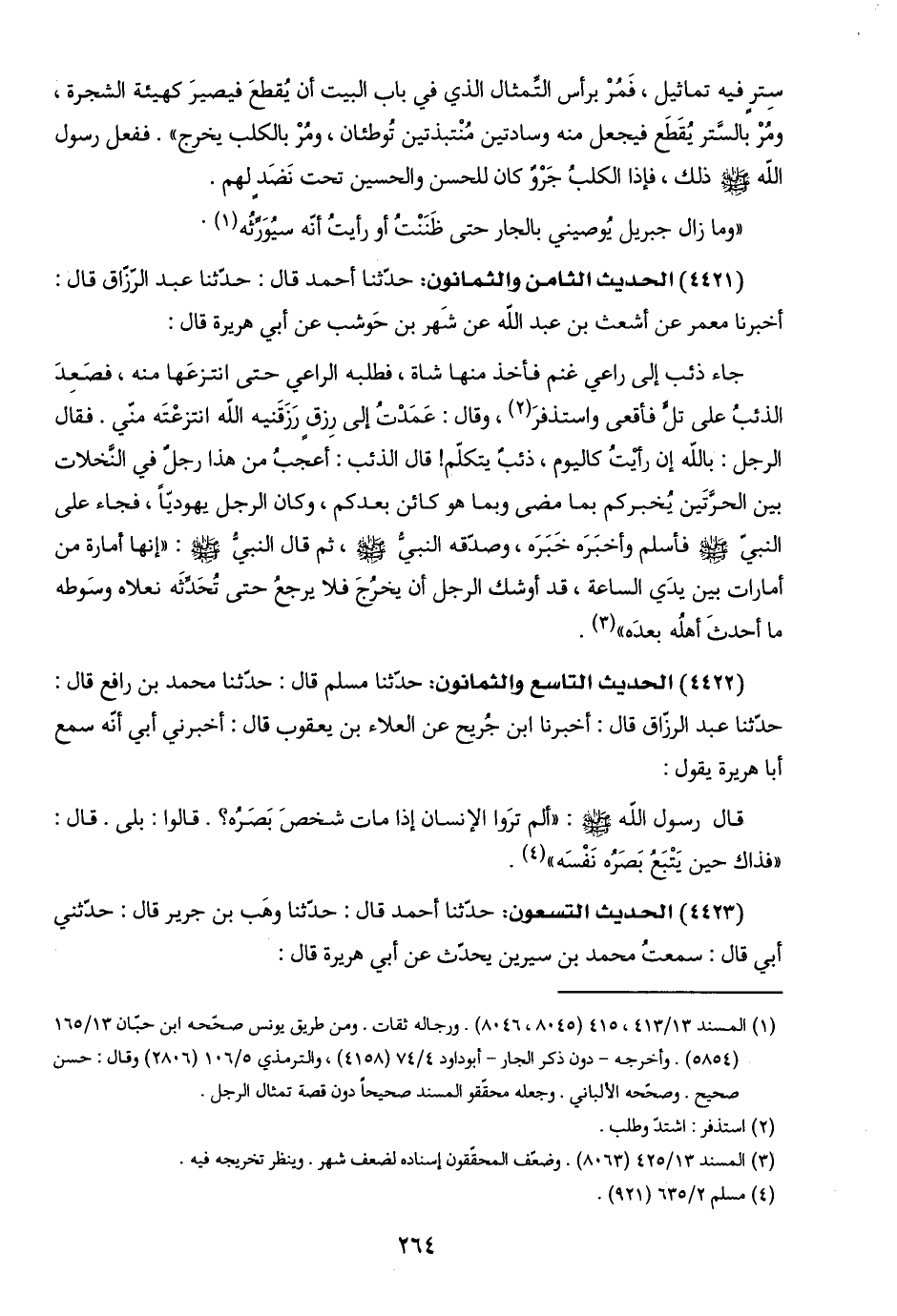 (٣) المسند ١٣/ ٤٢٥ (٨٠٦٣). وضعّف المحقّقون إسناده لضعف شهر. وينظر تخريجه فيه.