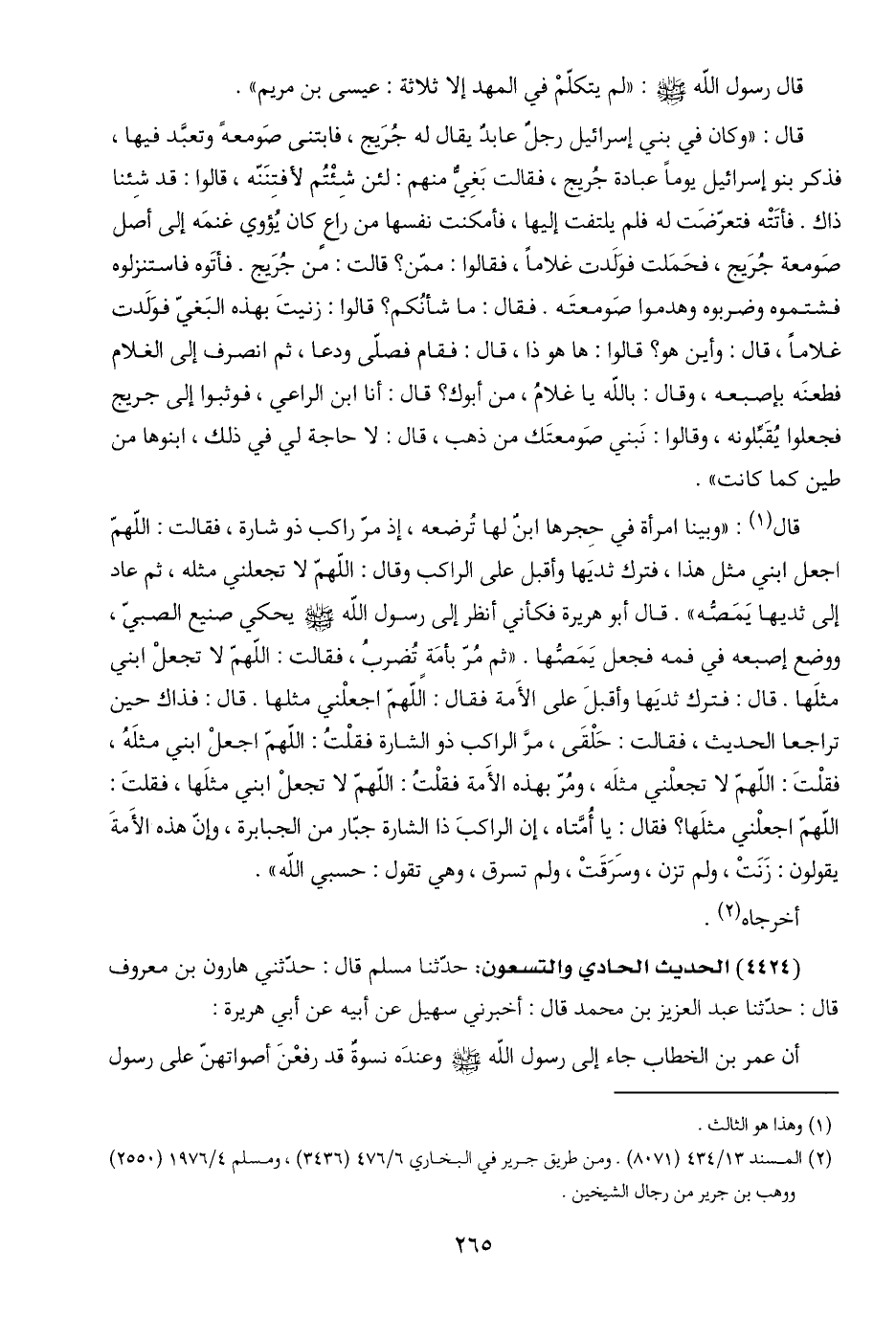 قال رسول اللَّه -صلى اللَّه عليه وسلم-: "لم يتكلّمْ في المهد إلا ثلاثة: عيسى بن مريم".