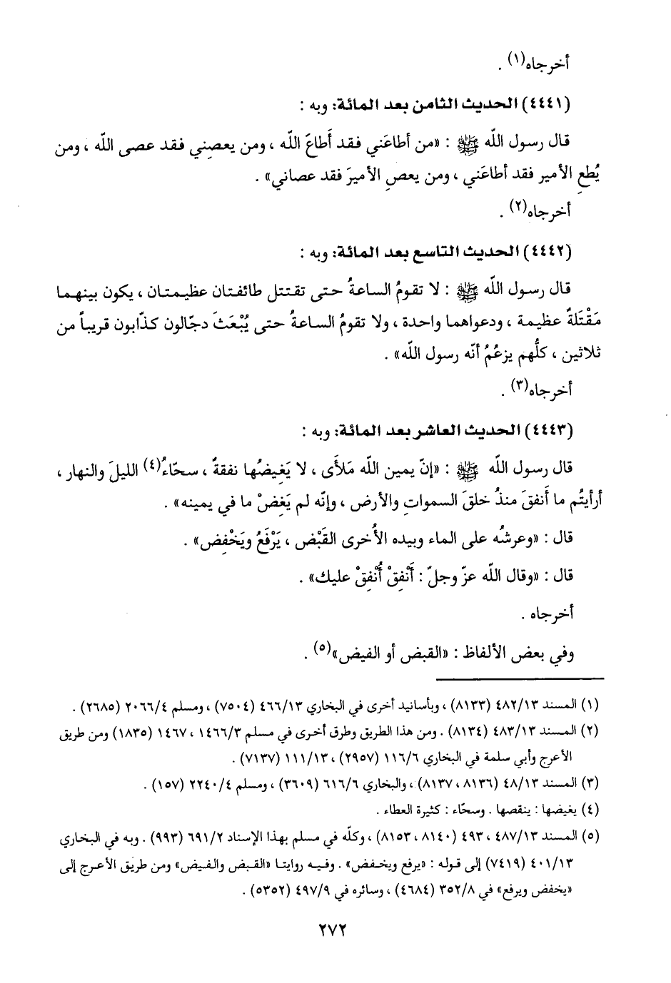 (١) المسند ١٣/ ٤٨٢ (٨١٣٣)، وبأسانيد أخرى في البخاري ١٣/ ٤٦٦ (٧٥٠٤)، ومسلم ٤/ ٢٠٦٦ (٢٦٨٥).