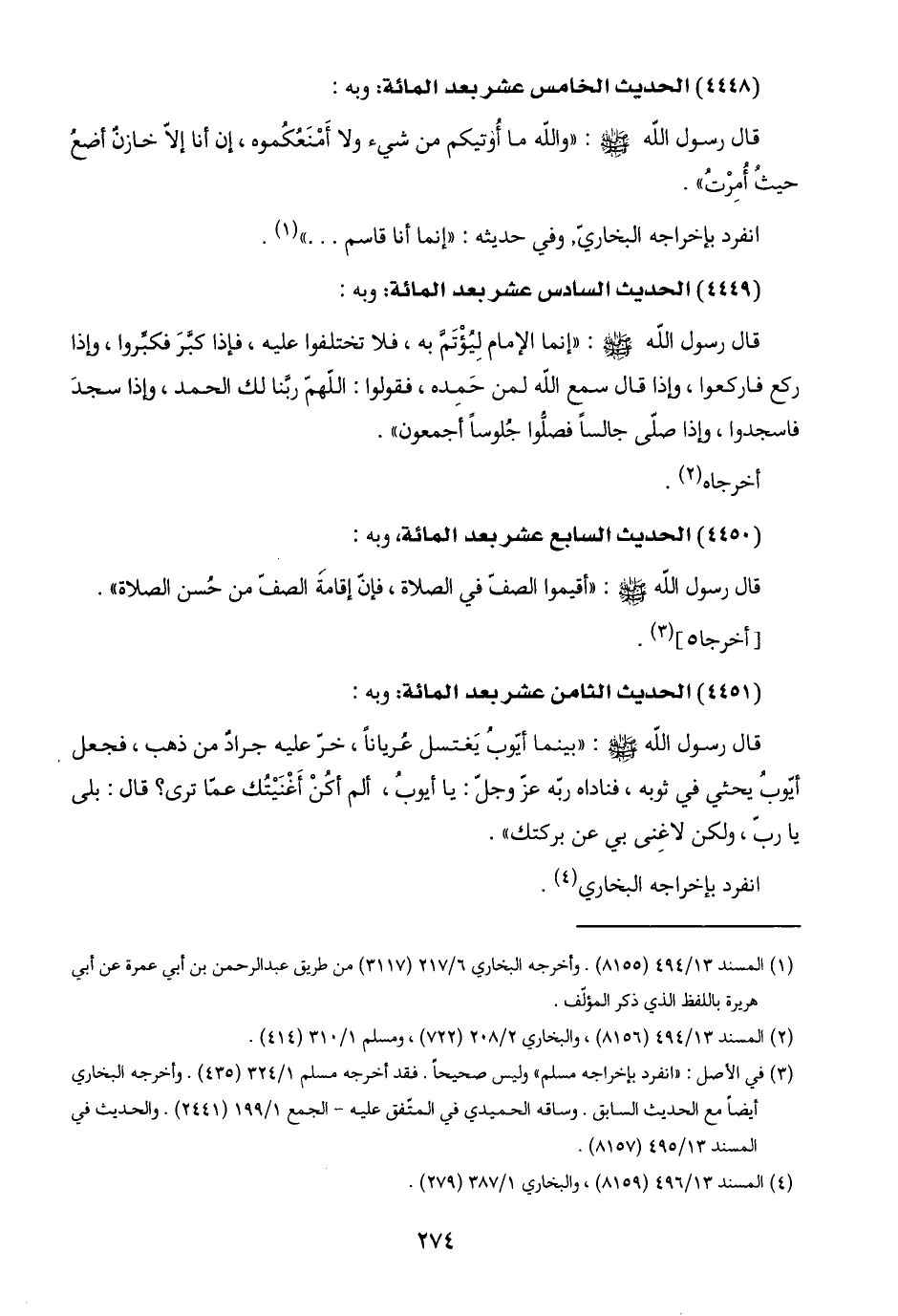 (٤) المسند ١٣/ ٤٩٦ (٨١٥٩)، والبخاري ١/ ٣٨٧ (٢٧٩).