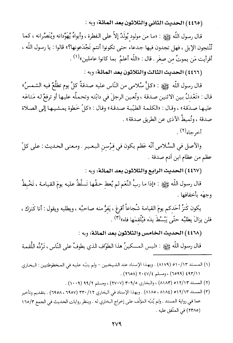 (٢) المسند ١٣/ ٥١٢ (٨١٨٣)، والبخاري ٥/ ٣٠٩ (٢٧٠٧)، ومسلم ٢/ ٩٩ (١٠٠٩).