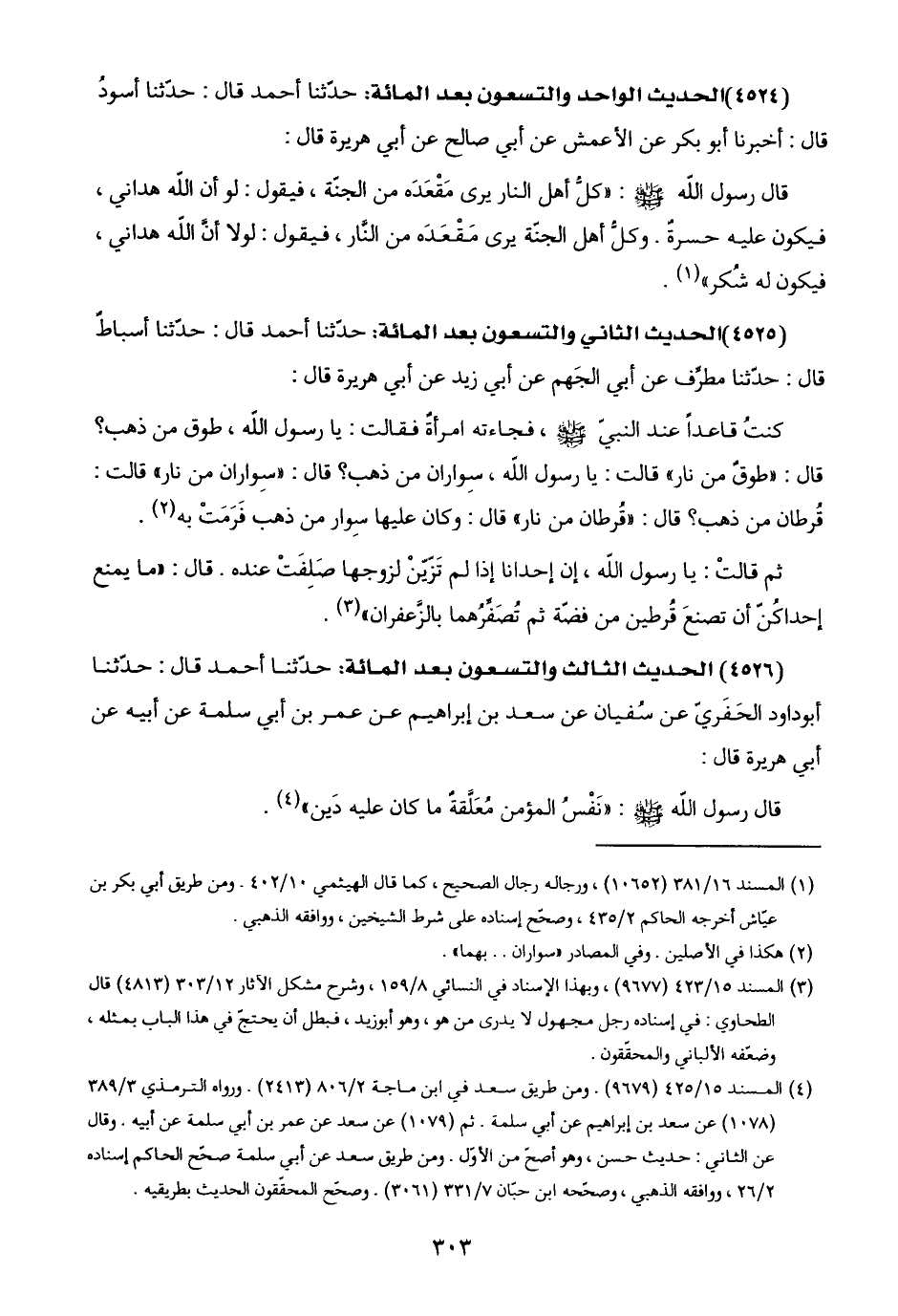 (٤٥٢٦) الحديث الثالث والتسعون بعد المائة: حدّثنا أحمد قال: حدّثنا أبو داود الحَفَريّ عن سُفيان عن سعد بن إبراهيم عن عمر بن أبي سلمة عن أبيه عن أبي هريرة قال: